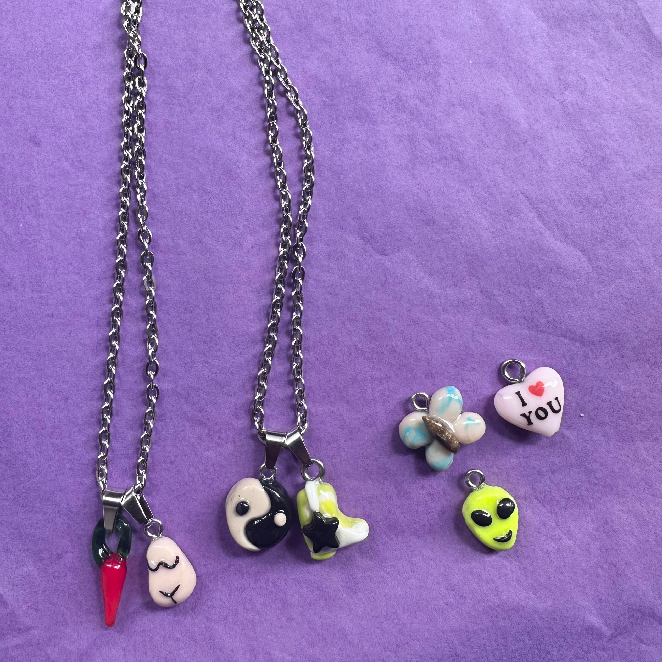 ステンレス製チェーンは35cm。 好きなチャームを2つ選んでください。